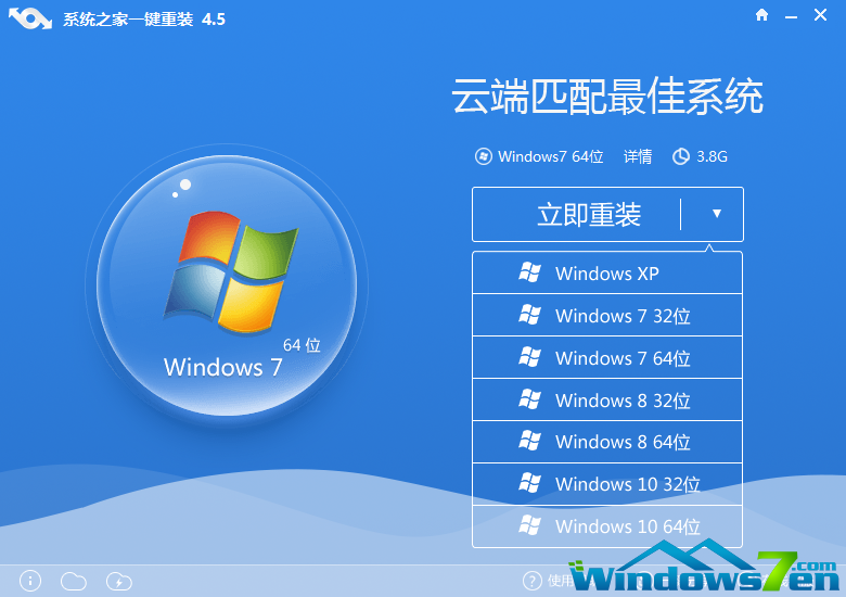 你还在用U盘,光驱重装系统吗。为了更加方便用户重装系统,windows7之家现推出windows系统之家重装大师,windows之家系统重装大师内集成了windows之家更新的各类最新 windows系统,包括XP/Win7/Win8/Win10等系统。让您在也不用为不会装机而烦恼了,强烈推荐大家使用!
