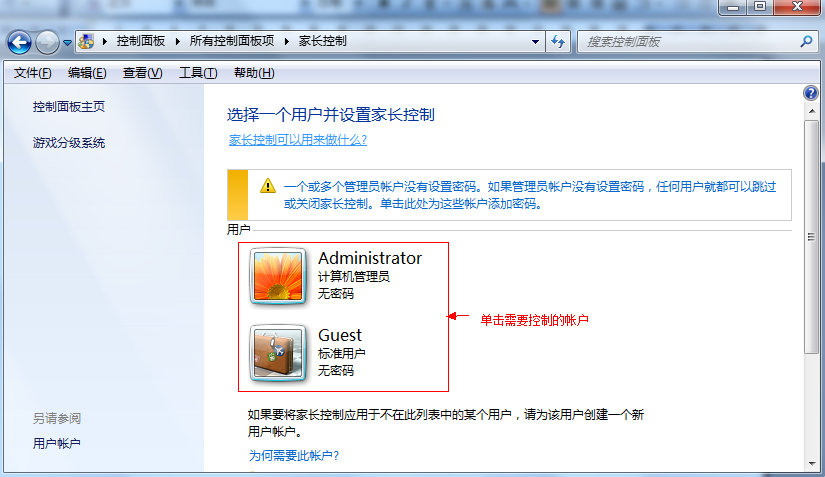 目前,网络上有许多包含了不良信息的游戏,未成年人的自控能力相对比较低,为了避免未成年人运行含有色情和血腥暴力内容的游戏,管理员可以通过家长控制功能来限制可以运行的电脑游戏级别。