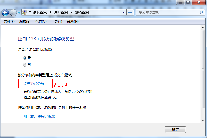 需要注意的是,Win7系统通过ESRB制定的标准辨别游戏及其内容,但国内相当多的游戏并未遵循该标准,因而必须严格限制允许运行的程序才能达到阻止未成年用户玩游戏的目的。具体设置方法如下: