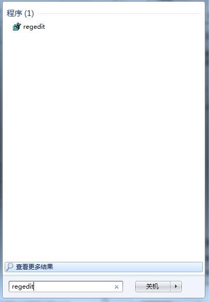 按钮,在搜索框输入“regedit”,然后“程序”列表中选择“regedit”选项。