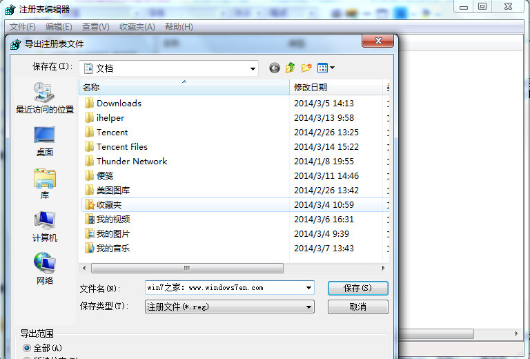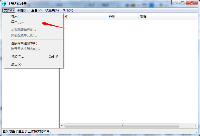 2.打开注册表编辑器后,如图所示(图3)!导出并且点击“保存”注册表。