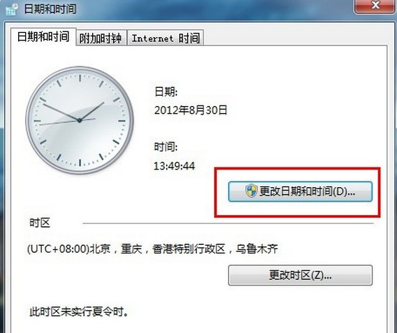 第二步:如果电脑上的时间是错乱的,需要对时间进行修改的话,我们可以在日期和时间设置这里,点击“更改日期和时间”,改好之后确认即可。