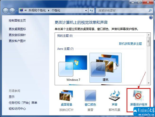 步骤二、在“个性化”窗口中,单击“屏幕保护程序”。