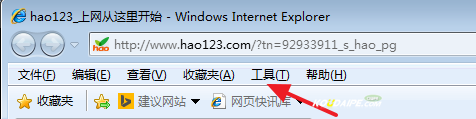 1.打开IE浏览器,点击“工具”选项。(如果您没找到该选项,请按键盘上的 Alt 键来显示菜单。)如图1