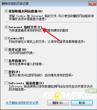 3.在“Internet临时文件”前打勾,然后删除。如图 3
