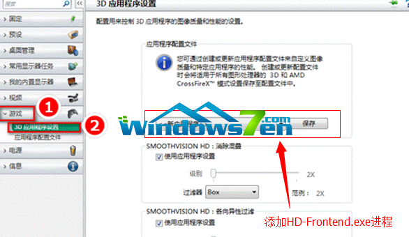 第五步、然后您再次返回到桌面点击右键菜单,然后依次点击catalyst(tm) control center >游戏 >3D应用程序设置 >新应用程序添加猩猩助手进程,然后保存就可以咯!