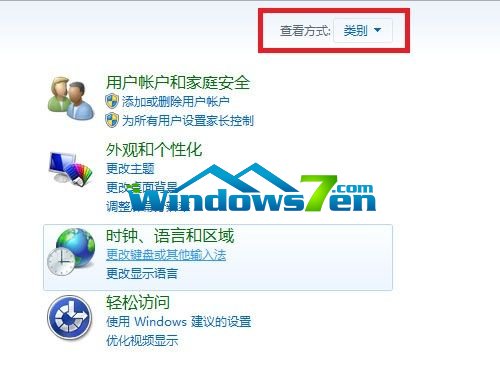 2,打开控制面板后在查看方式里选择“类别”,如下图: