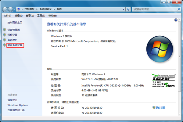 2.打开如下界面后,在左边栏目中,选择“高级系统设置”