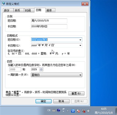 怎么样?非常简单吧!只要修改确定之后,windows7系统时间将按照用户自定义全部修改,包括一些应用软件的时间都会受其影响,所以如果你的电脑中没有什么与时间紧密联系的极少数应用软件,作此修改也没有什么不好;假如真的遇上了问题,不要着急,按照上面的相同方法打开时间设置将其恢复到默认状态即可!