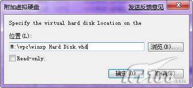 在出现的“附加虚拟硬盘”的窗口点击“浏览”按钮找到VPC映像文件,可以勾选“Read-only”来只读方式加载(如图3)。