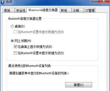 三、接着切换至“bluetooth信息交换器”选项卡中,选择“网上邻居”下的“在桌面上显示快捷方式”,然后点击确定按钮。
