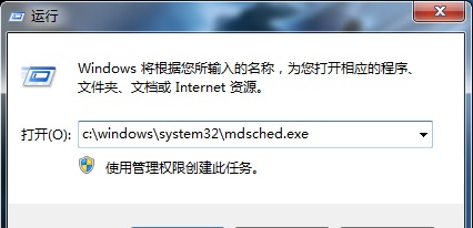 1、首先使用快捷键“win+R”打开运行窗口然后在窗口中输入:c:\windows\system32\mdsched.exe 点击回车。