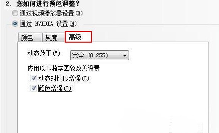 10、然后点击高级按钮,如果是显示器就选择0-255,但如果是电视那么建议选择16-255。接着我们将动态对比度增强和颜色增强勾选上,这样显示的效果不至于失真和不清楚。
