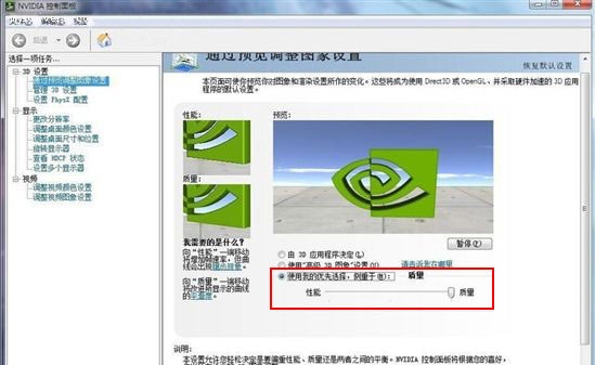 2、显卡的设置性能肯定是要高好了,所以在性能设置方面,建议选择最高,根据情况决定即可。