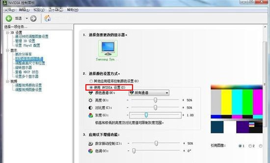 8、然后调节视频颜色设置,选择通过NVIDIA设置,在颜色里面设置为默认即可。