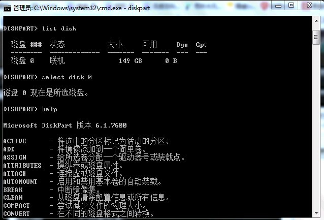 7、Select:选择要操作的对象,如一个磁盘或分区等。