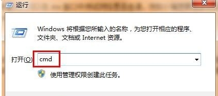 我们可以使用鼠标依次点击win7系统中“开始—运行”,在打开的运行窗口中我们输入“cmd”按下回车键打开命令提示窗口;如下图所示: