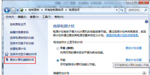 在电源选项窗口中点“更改计算机睡眠时间”打开对应的设置页面。