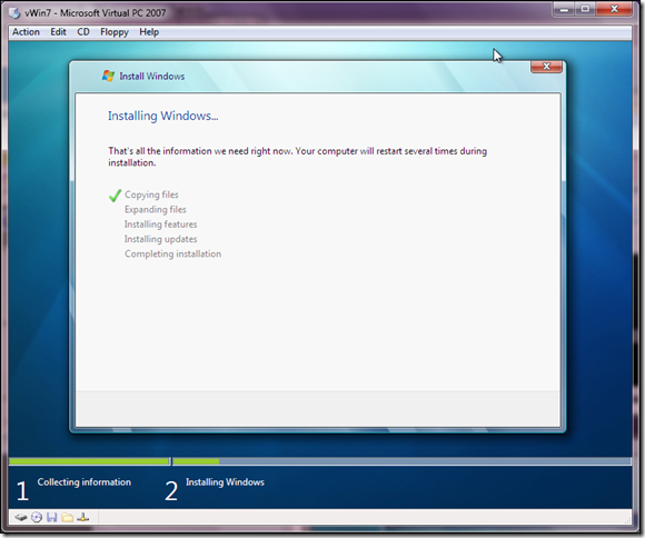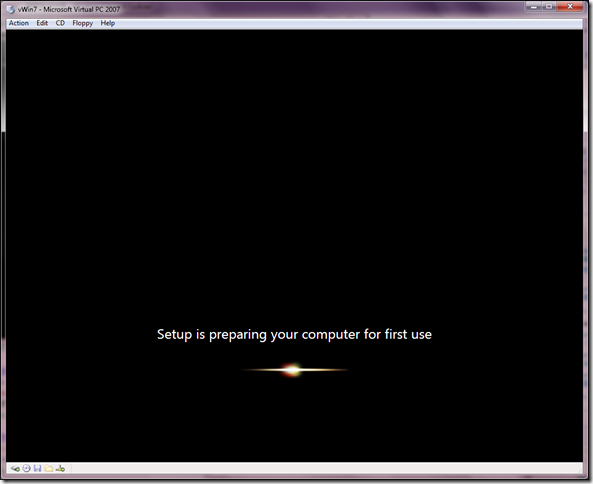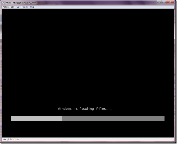 接下来就要在这个VHD中安装Windows 7了, 我们这里使用VPC 2007来安装, 如下步骤:
