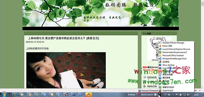 我不知道有多少人像我这样,总喜欢快捷模式。也许很多人会到开始菜单里一步一步地顺藤摸瓜,但用熟了快捷键和快捷模式后可以节省多少时间,可以让烦人的模式变得轻松愉快,我是一定要找回快速启动栏,一定要。这个操作有点烦锁,但麻烦一次,享受在后面: