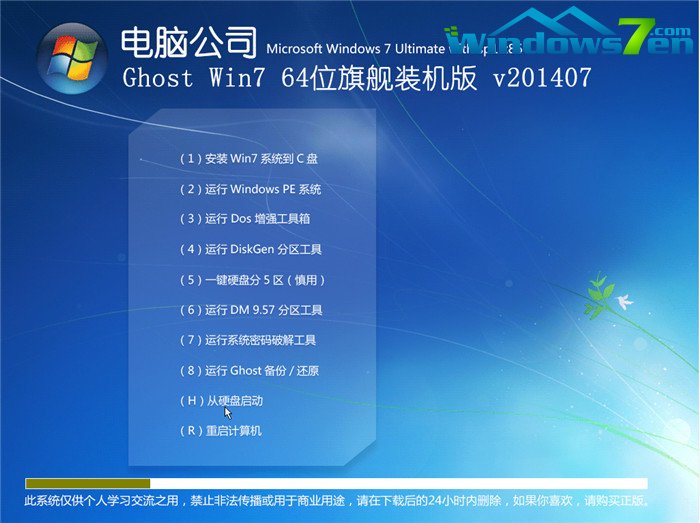 电脑公司 Ghost Win7 64位旗舰版 V13.0 系统特色: 源安装盘采用window7 sp1 简体中文旗舰版32位 (MSDN)官方发布正式版原版制作 集成最近磁盘驱动器,完美解决磁盘驱动器问题。 采用最新激活