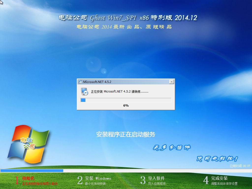 GhostWin7 是指使用Ghost软件做成压缩包的Windows7,俗称克隆版Win7。用克隆版的目的是节省安装时间。本作品在采用微软封装部署技术的基础上,结合作者的实际工作经验,融合了许多实用的功能。它通过一键分区、一键装系统、一键Ghost备份(恢复)等一系列手段,使装系统花费的时间缩至最短,极大地提高了工作效率。