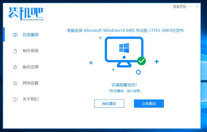 5、装机吧一健重装系统:装机吧是一款非常成熟的电脑重装系统软件,我们可以使用它快速重装系经。这个软件支持xp,win7,win8,win10 32位和64位电脑重装。有了这个软件,我们可以很快速重装好我们的系统,整个软件的使用还是非常方便的。
