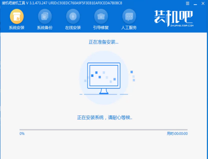 8、接下载装机吧软件会自动帮我们安装系统,我们只需要耐心等待一会。