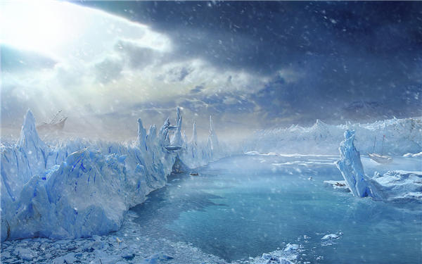 壁纸简介:这是一张冰川的壁纸,冰川是水的一种存在形式,是雪经过一系列变化转变而来的。这张壁纸中,天空中被乌云遮住,只能看到几束阳光,从阳光下,我们可以看到漫天的雪