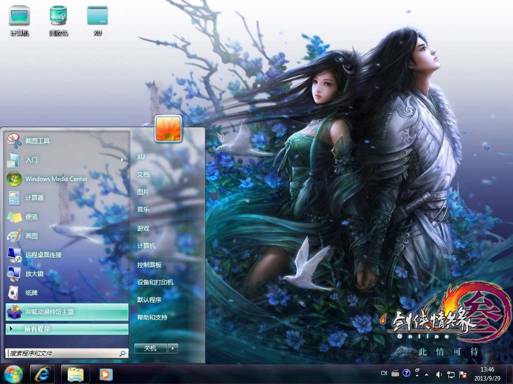 今天给大家带来Windows7剑侠情缘主题。非常唯美的电脑主题,看的小编都不好意思了,喜欢的速度安装到自己的电脑中应用哦!温馨提示:Windows7主题安装后开始菜单与任务栏没有改