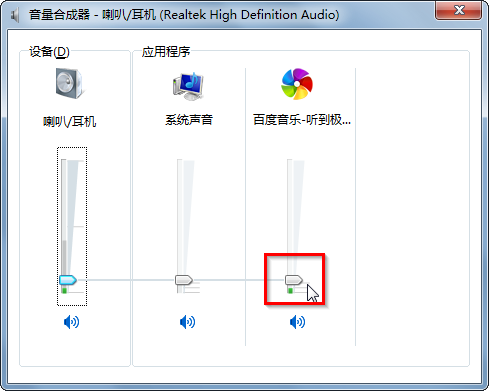 如果你只想将调节网页背景音乐的音量,则点击音量调节滑块下方的“合成器”,打开程序音量调节界面。
