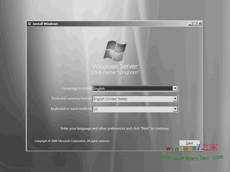 安装程序启动,选择您要安装的语言类型,同时选择适合自己的时间和货币显示种类及键盘和输入方式。
