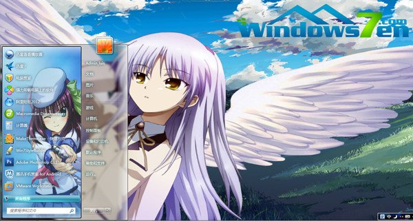 今天Windows之家(www.958358.com )给大家带来动漫游戏天使_Win7主题 ,这款主题是很多动漫迷喜欢的主题,人物大家都很熟悉了。展开的翅膀很大气,开始菜单任务很cue,很有爱,喜欢大家喜欢。