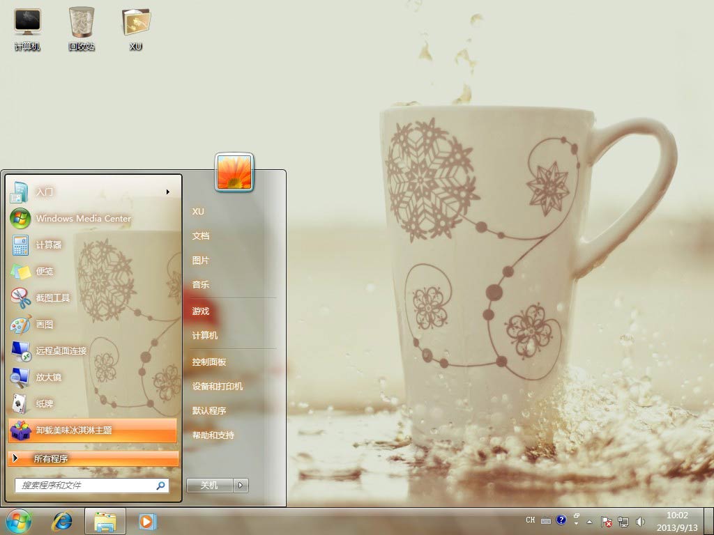 今天给大家带来牛奶杯子Win7主题。