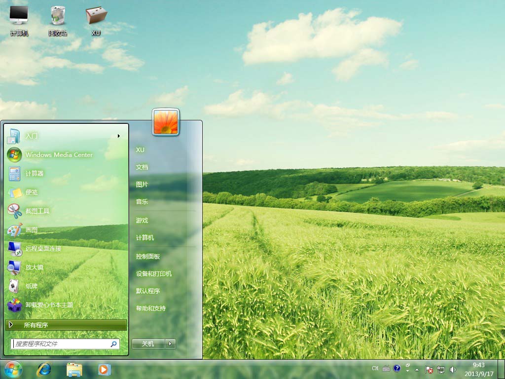 这是一款以绿色植物为主的Windows7主题,主题使用了蓝色的天空和绿色饱满的麦穗,在广阔的田野上心情感觉特别舒畅。