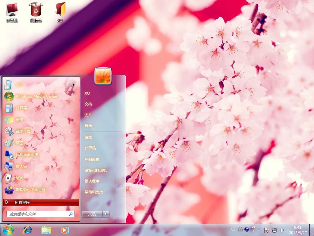 今天给大家带来Win7粉色樱花主题。