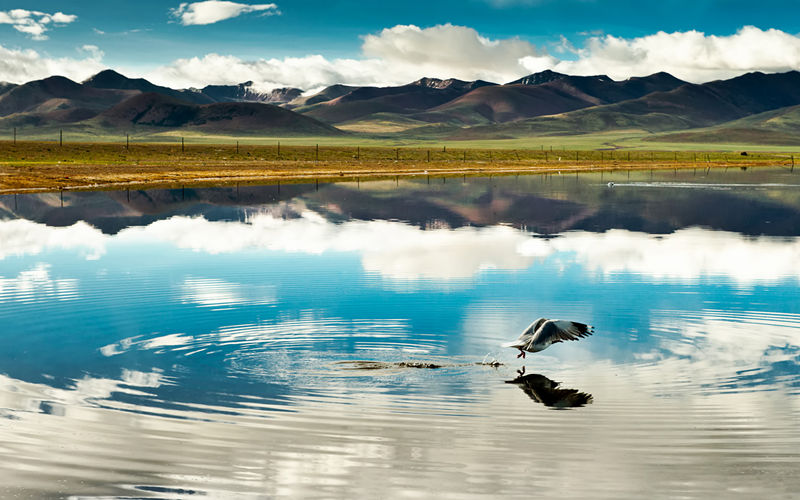 西藏,一片神秘的圣洁的热土!如果不去西藏,就永远不知道中国的西部究竟有多美。今天小编就为大家推荐一款西藏湖泊的桌面壁纸,蓝天、白云、圣洁的雪山、醉人的湖泊,一只水鸟此起彼伏,点缀在碧波之上,蓝天之间。希望大家点击下载!