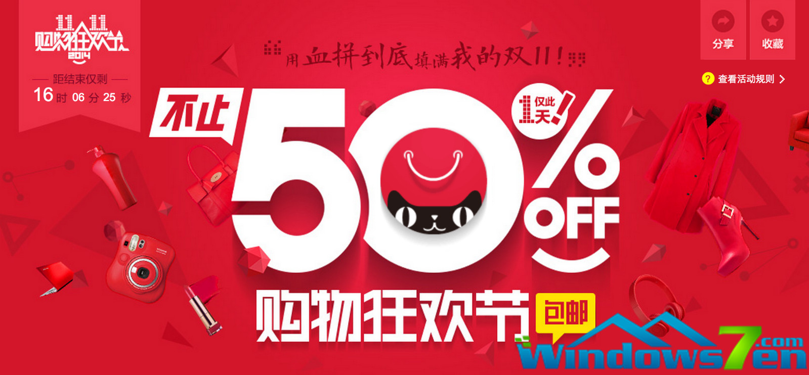 Windows7之家:11月11日,就是双十一的日子,在这个人为的特殊日子里,天猫疯狂了!双十一购物狂欢节仅仅开场38分钟28秒,其交易额就突破了100亿元。这不是骇人听闻,来自阿里巴巴