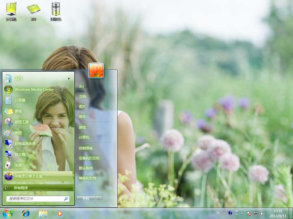 今天给大家带来Win7美女主题。一位漂亮的美女在花丛中向你面带微笑哦,喜欢的速度下载,美女不容错过。温馨提示:如果win7主题安装后开始菜单与任务栏没有改变,请下载主题破