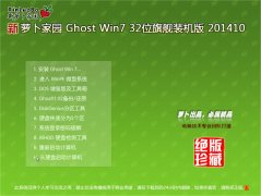 (萝卜家园32位win7旗舰版201410月金秋版)源于win732位原版基础上进行适当精简和优化的系统,集成最新,最常见的电脑系统软件与win732位系统驱动,并且系统干净无毒,按照用户使用习惯
