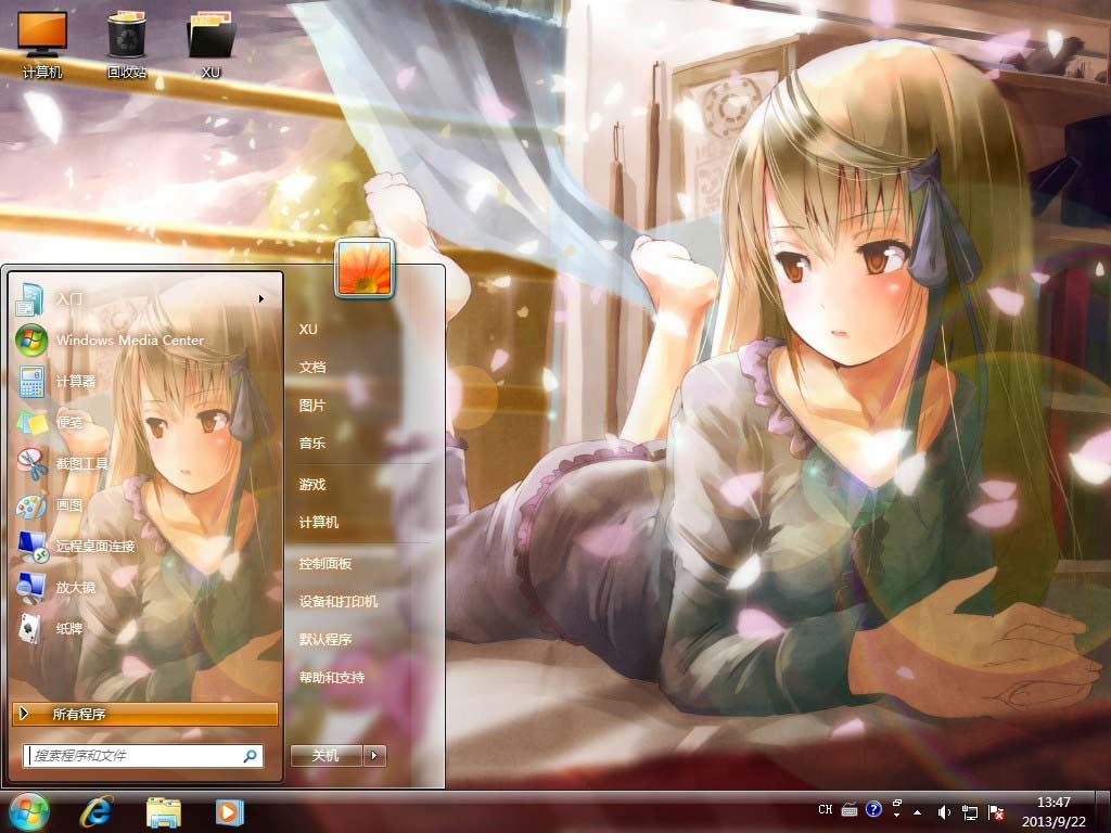 今天给大家带来光Windows7光之少女主题。这是一个动漫类型的Win7主题,主题采用了手绘动漫作为壁纸,以橙色为主题,整体感觉非常温暖,有些甜甜的感觉。温馨提示:如果win7主题
