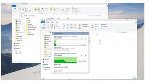 除了上述改进之外,资源管理器还进一步改善了文件拷贝界面。现在,拷贝与移动被组织进了一个窗口,更易于管理。传输速度也会实时显示,操作可以被暂停,而此前只能够被取消。