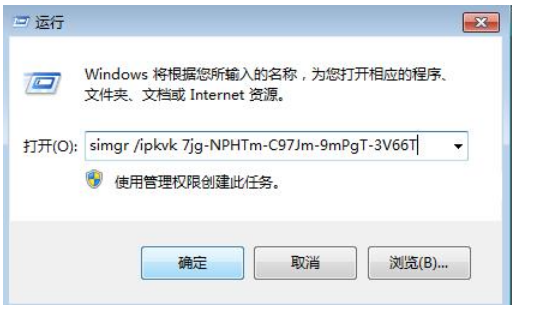 2、复制粘到命令提示符(管理员)中,按一下粘贴:simgr /ipkvk 7jg-NPHTm-C97Jm-9mPgT-3V66T。