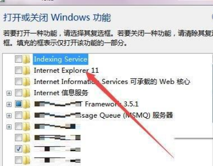 4.然后会弹出一个Windows功能的小窗口,加载要等一下,加载完成之后,可以看到一个 IE11的选项,它前面的勾是没有勾上的,也就是处于关闭状态的。