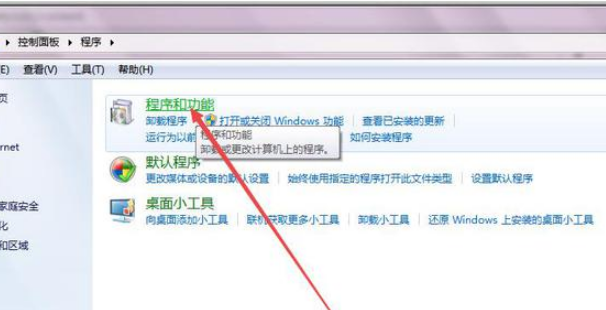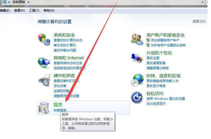 1.首先,我们要确认自己的没有IE浏览器,然后在桌面上面找到控制面板,然后双击打开它;打开之后,点击程序这个选项。