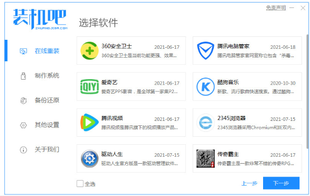 2、选择需要安装的电脑软件,不需要的话就无需选择,直接点击下一步操作