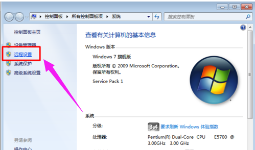 1、 右键桌面上的“计算机”图标,选择“属性”,在打开的窗口中点击“远程设置”项进入。