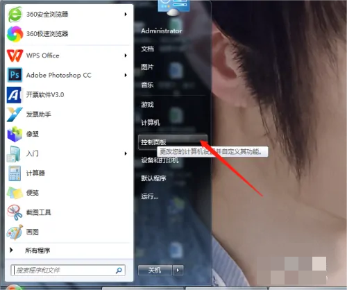 点击左下角开始,点击控制面板选项。