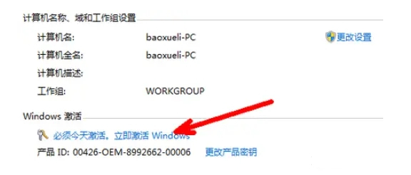 方法一:计算机属性页,点击立即激活windows。