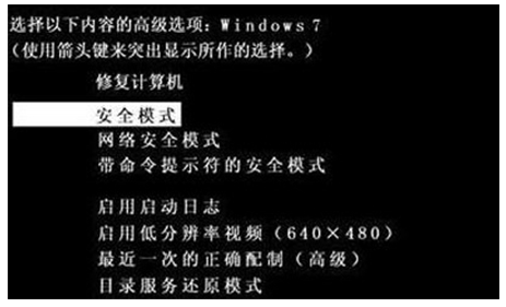 方法二:按F8进入高级选项界面,选择安全模式,进入系统。